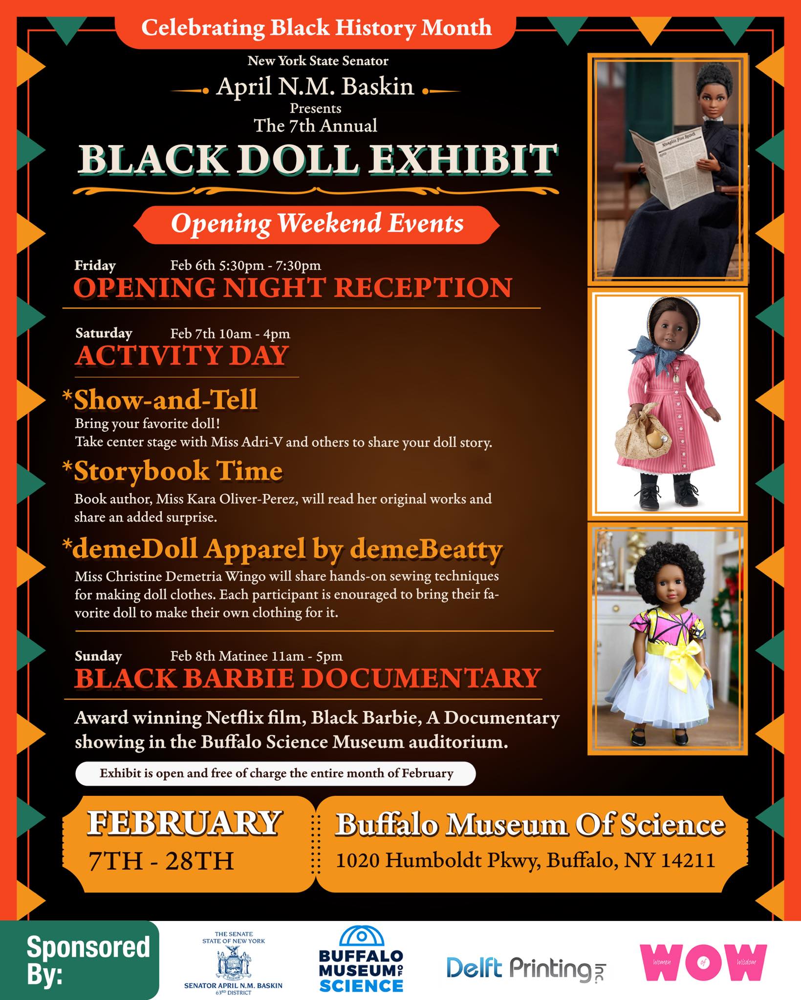 New York State Senator April N.M. Baskin will host the seventh annual Black Doll Exhibit to celebrate Black History Month at the Buffalo Museum of Science.