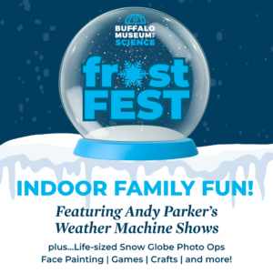 Saturday, Dec. 27 through Tuesday, Dec. 30 Shows at 10:30 a.m., 11:30 a.m., 1 p.m. & 2 p.m. Meteorologist Andy Parker and his Weather Machine will take the stage in the museum’s auditorium during winter break! The Weather Machine is capable of producing all types of weather elements, from a...